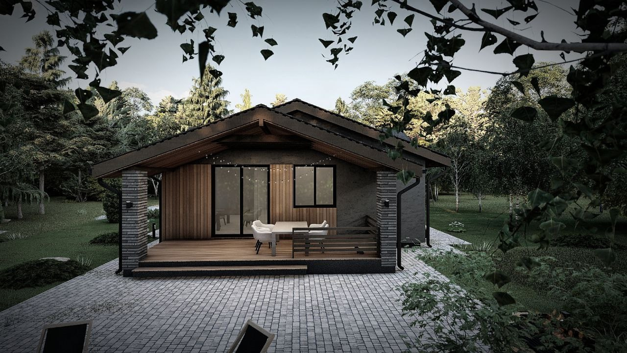 Одноэтажный дом в березовом лесу